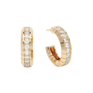 Our Eternity Hoops in engraved gold contrasted with Brillant cut lab grown diamonds and handcrafted in 14Kt recycled gold. The LOEV Eternity Hoops will take you from day to night and are guaranteed to become your go to earrings.