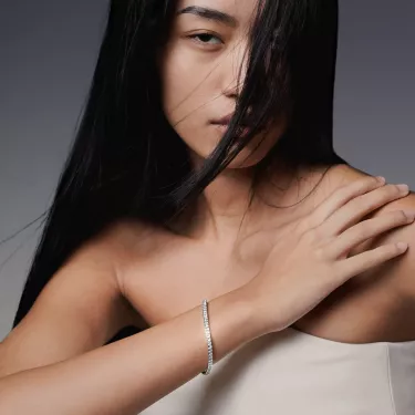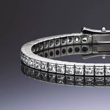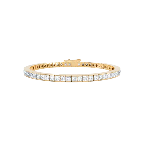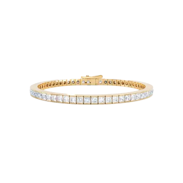 Introducing the LOEV Princess Tennis bracelet with contemporary princess cut sustainable diamonds. The geometric cut diamonds have a sensational brilliance, contrasting with 18 kt sleek polished gold. The LOEV Lab grown diamonds are of D/E color and VS+ clarity created with renewable energy.