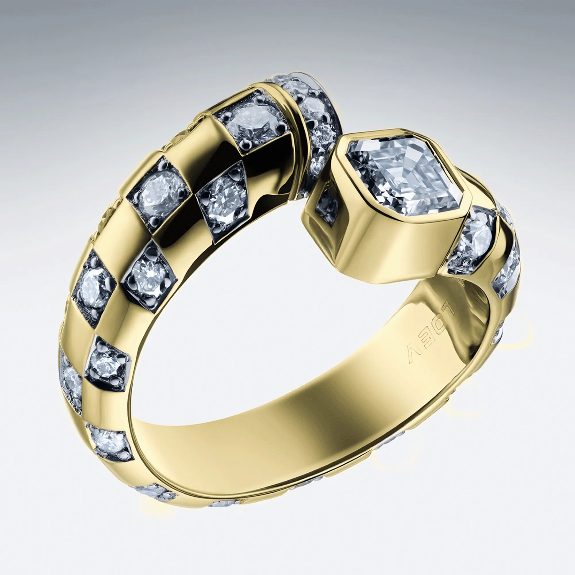The LOEV Toi et Moi Checkerboard Ring features a beautiful Asscher cut diamond and geometric diamond checkerboard pattern. The unique ring makes a statement on its own or connect it with another LOEV Toi et Moi ring, finding your perfect LOEV match.