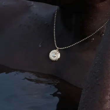 The LOEV Toi et Moi medallion features a modern checkerboard pattern created with Brilliant cut lab grown diamonds and handcrafted in 18Kt recycled gold. It comes with a 18Kt recycled gold chain.