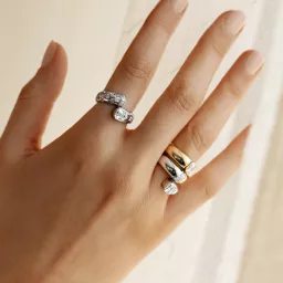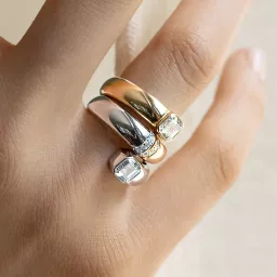 The LOEV polished Toi et Moi Ring is set with a magnificent Asscher cut diamond and handcrafted in 18Kt recycled gold. Designed to be worn alone or connected with another LOEV Toi et Moi ring. The connection of two rings represents a special moment when everything just clicks into place or two hearts become one. Find your perfect LOEV match within our Toi et Moi ring offer. We love the polished gold Toi et Moi connected with the Checkerboard Toi et Moi.