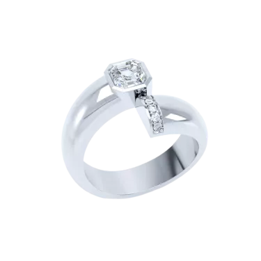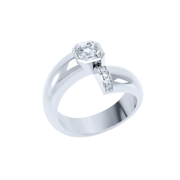 - Polished gold ring with Asscher cut lab grown diamond and a Pavé line