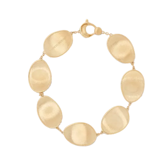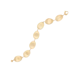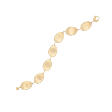 This elegant bracelet with a light, irregular surface is made up of a sequence of 18kt yellow gold leaves, finely hand-engraved using an ancient Florentine technique which provides a very tactile finish. Fascinating and extremely classy.