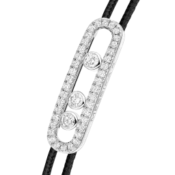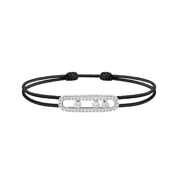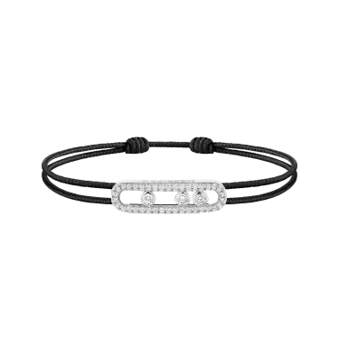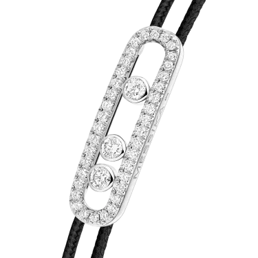 The timeless MESSIKA CARE(s) black cord bracelet adapts to all tastes. The pavé Baby Move motif is featured here in a diamond cord bracelet that is casual chic and easy to wear. With its three moving stones that sparkle and move with every movement, it adds the perfect touch of light to everyday life. The MESSIKA CARE(s) line is a socially conscious collection: for each diamond bracelet purchased, a portion of the profits is donated via the Messika Foundation to associations and NGOs working to support children in the areas of education and health. A gold and diamond jewel that reflects bonds of solidarity that transcend borders.