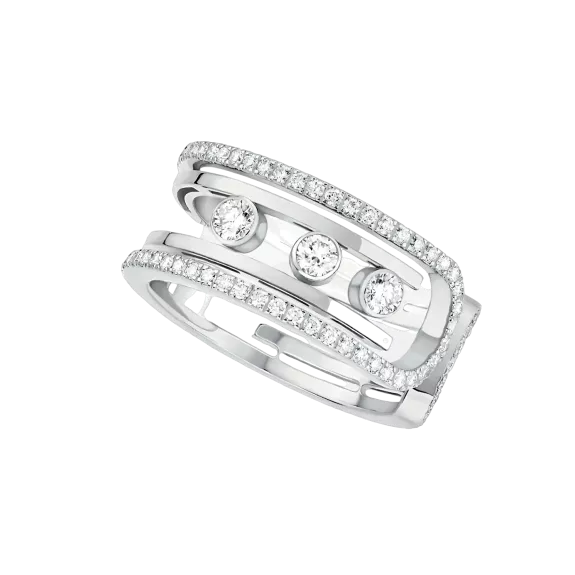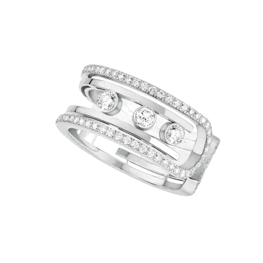 Are you looking for a modern and elegant diamond ring? The Move 10th ring in white gold was made for you. Ultra-graphic, this ring delights thanks to the originality of its asymmetric and structured style. Thanks to its white gold and four moving diamonds, a Messika signature concept, this luxury jewelry piece will light up your hand with a unique sparkle. A true must-have!