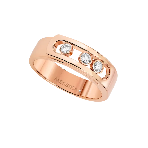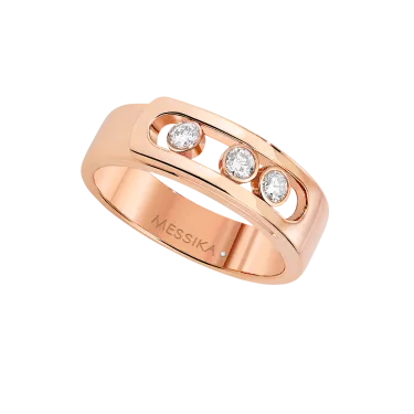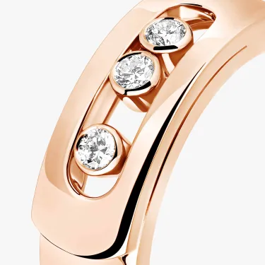 The pink gold rings are definitely trendy. Its originality, softness and poetry make pink gold a success. It is often the best trade-off between a luxury jewel in yellow gold and a white gold jewel. This 18 carat pink gold diamond ring, fully handcrafted and set with three brilliant cut diamonds in motion, is a variation of the Move luxury jewelry collection, called Move Noa - the first name of one of Valérie Messika's daughters-. This pink gold diamond ring is like a a golden ribbon that wraps around the finger. With its pared down graphic style, essential lines, the collection, symbol of the love of yesterday, today and tomorrow, continues to dare by combining a unique design and a timeless elegance.