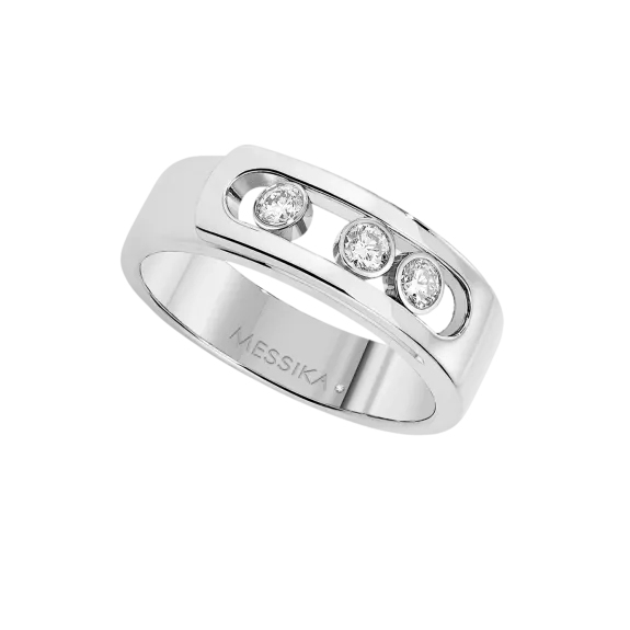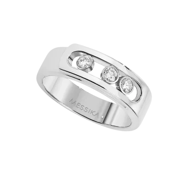 Discover online this white gold diamond ring Move Noa. This 18 carat white gold diamond ring, fully handcrafted and set with three brilliant cut diamonds in motion, is a variation of the Move luxury jewelery collection, called Move Noa - the first name of one of Valérie Messika's daughters-. This diamond jewel is like a a golden ribbon that wraps around the finger. The luminous white gold enlightens the diamonds purity, enhancing their radiance. With its pared down graphic style, essential lines, the Move Noa diamond jewels collection, symbol of the love of yesterday, today and tomorrow, continues to dare by combining a unique design and a timeless elegance. Let be seduced by the white gold diamond ring, it will your everyday companion!