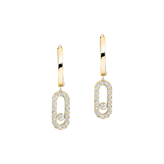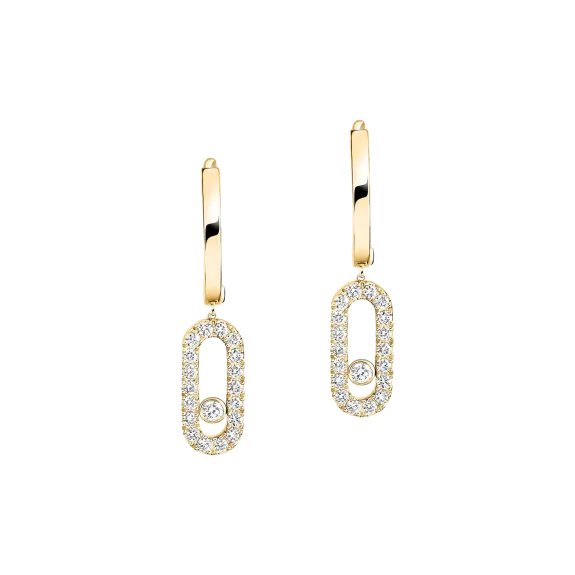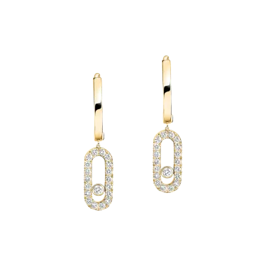 Diamond pavé, an iconic motif, a delicate and feminine design… These Move Uno diamond hoop earrings have it all! With the sparkle of their moving diamonds and their yellow gold, this pair of women’s hoop earrings will illuminate your face with a radiant glow. Worn on their own or layered with other Messika diamond jewellery, these women’s earrings elegantly complement every style. You’ll never want to take them off !