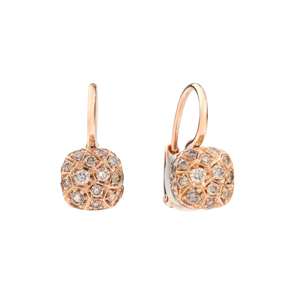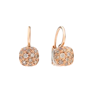Diamonds play a central role in the new Nudo Petit earrings. To achieve a warm brilliance, cognac diamonds are set in rose gold.