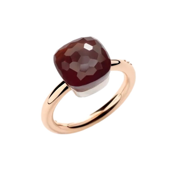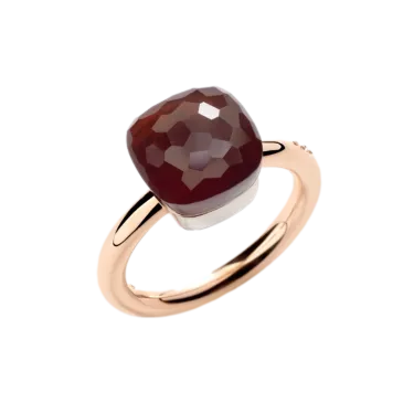 Nudo, the flagship ring of Pomellato, with its elegant and contemporary design, is characterized by a "nude" stone available in countless colors. It can be paired with other stones of different sizes.