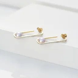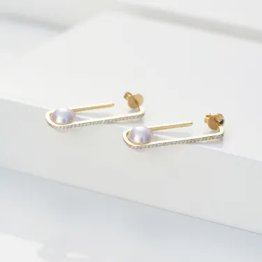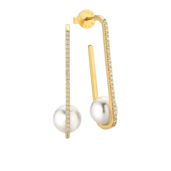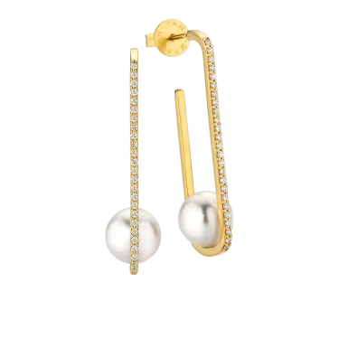 Diamonds set yellow gold embraces the beautiful Akoya pearl in this exceptional design. This pearl stud earring is anything but ordinary. Creative and yet timeless due to the classic yellow gold and white combination, this earring is a wonderful addition to any jewellery collection.