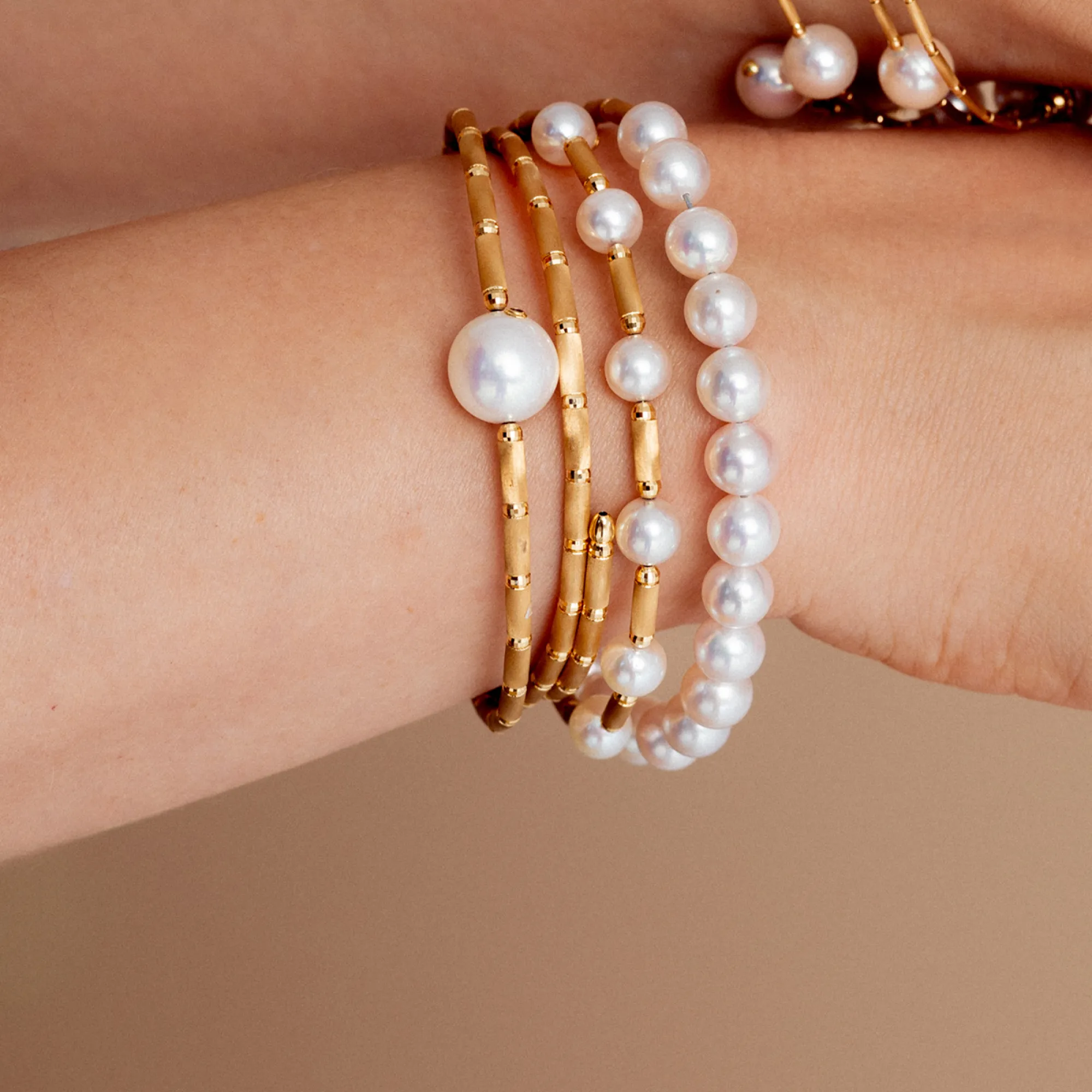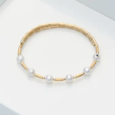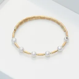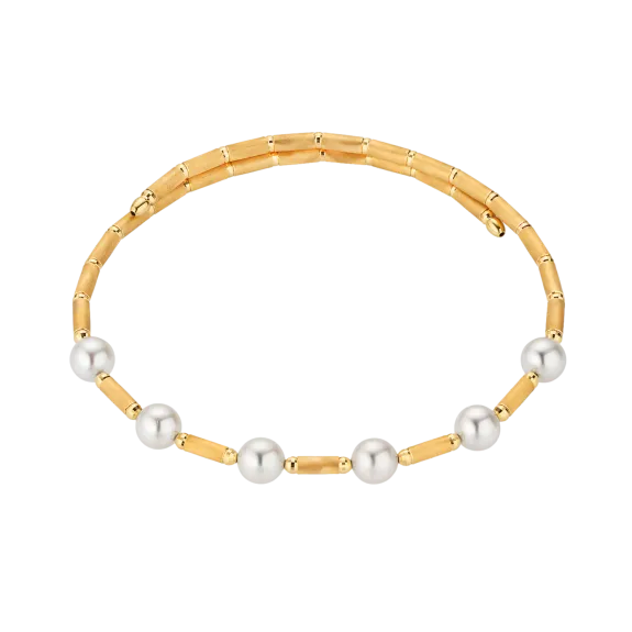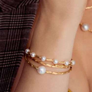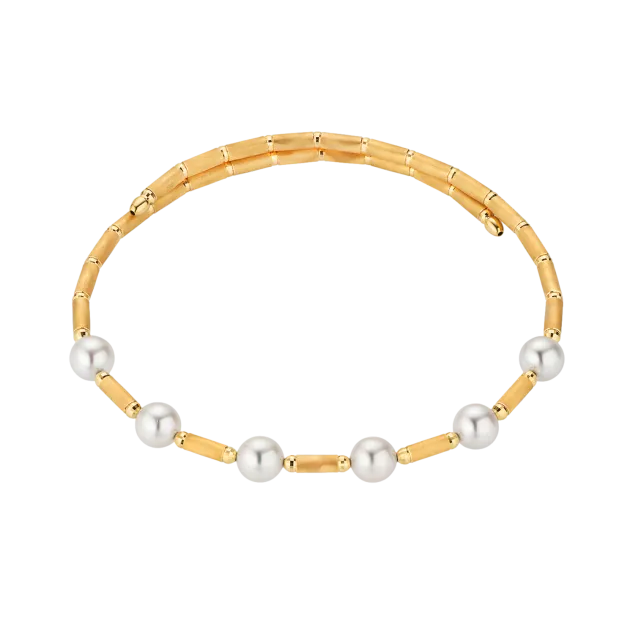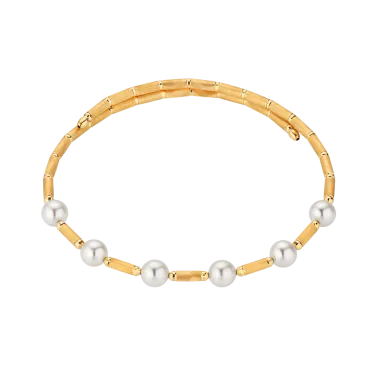 Classic and chic, that's the design of the yellow gold bracelet with delicate Akoya pearls. Lightweight throughout and with a magnetic closure, it wears effortlessly.
