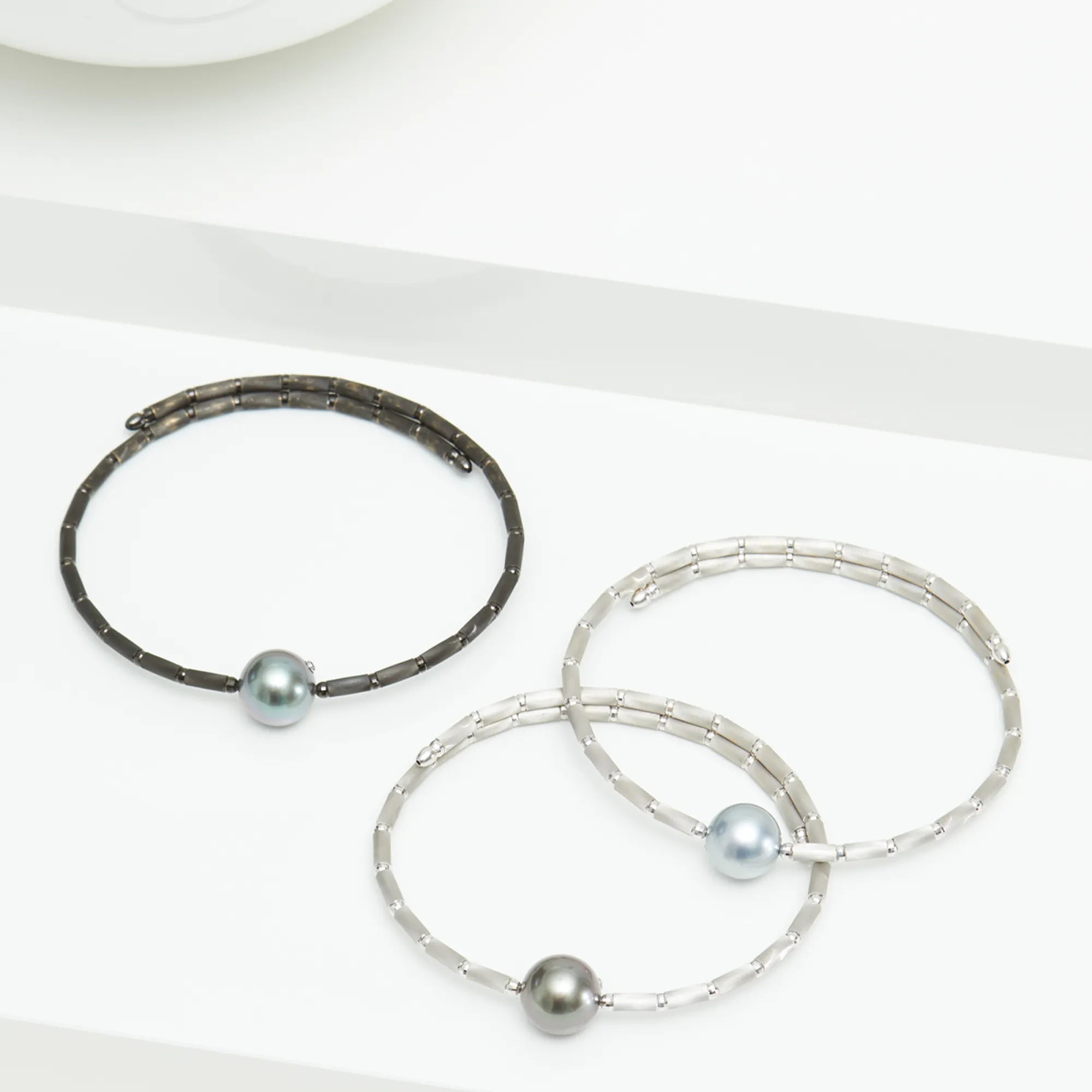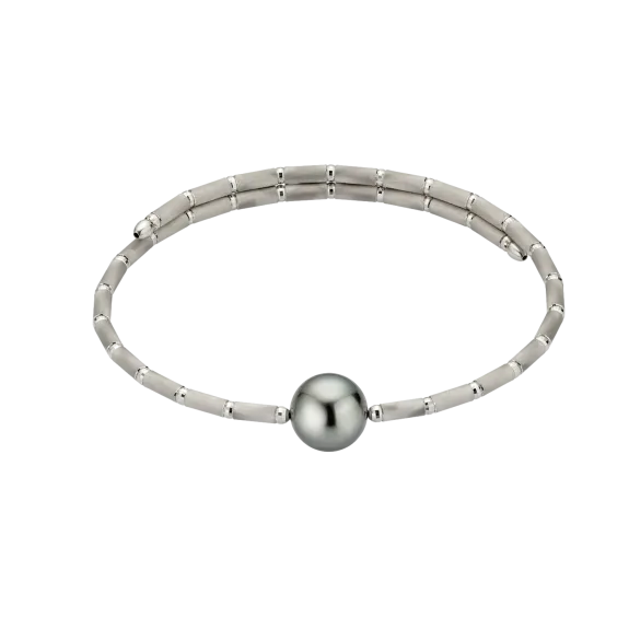 The lightness of this elegant white gold pearl bracelet is impressive, with the stunning back Tahiti pearl as eye-catcher. Incredibly comfortable to wear and easily adjustable, the pearl bracelet can be combined with both everyday and extravagant looks.