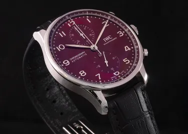 Chronographs don’t always have to be big sports watches, in fact, the IWC Portugieser Chronograph 41 proves that this complication also looks stunning in a more classical style. This version comes in a 41mm stainless steel case with a deep burgundy dial paired with a black alligator strap.