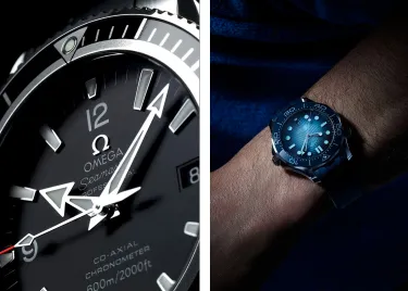 The unidirectional rotating bezel is a complication of far greater practical use for divers of all levels. The system is simple: the external bezel acts as a countdown timer or chronometer. The diver aligns the bezel’s index with the minute hand at the start of the dive and can then observe the elapsed time as the minute hand progresses. The bezel rotates in only one direction for safety reasons: in the event of an accidental impact during the dive, it can only move forward, preventing the index from shifting backward—which would indicate a shorter dive time than the actual one. Several iconic diving watches feature this complication, such as the Rolex Submariner and the Omega Seamaster Diver 300M. Often, the bezel’s numerals are luminescent to ensure clear and rapid visibility, even in dark conditions. These technical requirements have gradually shaped an instantly recognizable aesthetic. A notched bezel, broad hands, generous indices, and strong contrasts—each element responds to a strict requirement for legibility and reliability in extreme conditions.