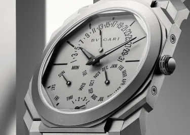 Retrograde is the term used to describe a hand or other indicator which, at the end of its course, returns to its starting point. This return is instantaneous. This display is highly prized for its visual appeal, as retrograde hands are infinitely more vivid on a dial than the trailing hands used in most traditional timepieces. However, it is a display technique that generates a certain amount of wear on its components and consumes more energy. It is therefore not without technical consequences, however slight, for the design of the movement.