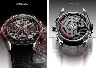 But the real technical statement comes from the Carrera Chronograph Split-Seconds. Here, TAG Heuer pushes performance further. Ultra-light and visually expressive thanks to its openworked movement, it reveals a more technical side of the Carrera. A perfectly controlled balance between sport and engineering.