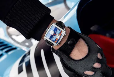 is one of the most iconic sports watches out there with its square case shape and matching square counters. The timepiece was released in 1969 and gained star status in 1971 when Steve McQueen wore it in the movie Le Mans. This 39mm stainless steel edition features Gulf’s iconic racing livery with blue and orange stripes on the right-hand side of the dial. The watch also includes TAG Heuer’s vintage logo from the same period.