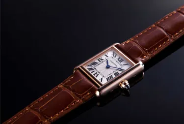is not vintage-inspired as it never actually went out of fashion! Invented by Louis Cartier in 1917, the design was inspired by a French military tank used during WW1, as viewed from above. This iconic design has been in the brand’s collection for over a hundred years and will no doubt stay timeless for hundreds more to come. This version comes in an 18-karat yellow gold case with a quartz movement and a brown alligator strap.
