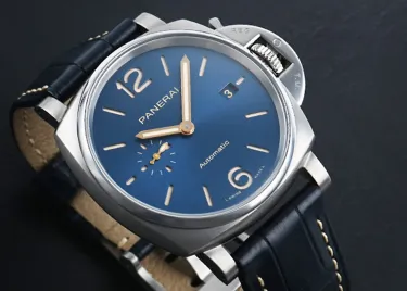 For those people who are passionate about adventure, but who also want a timepiece with an elegant design, Panerai could be the brand of choice. This Luminor Due 42 is housed in the brand’s 42mm titanium Luminor case with a crown protector. The blue luminous sun-brushed dial is adorned with large rose gold luminescent numerals, hands, and indexes, and is completed with a dark blue alligator strap with beige stitching. All the elements of this watch combine ruggedness, performance, and elegance for all those who like to look stylish on their adventures!