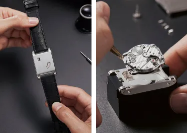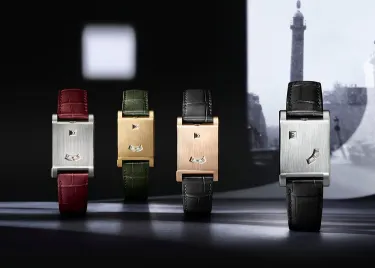 Its sleek rectangular case, crafted in yellow gold, rose gold, or platinum, elegantly conceals jumping hours and trailing minutes. Inside, the hand-wound 9755 MC caliber embodies Cartier’s horological precision. But it’s the platinum version with oblique display, produced in only 200 pieces, where the watch reveals its true uniqueness — a rare piece of discreet refinement, offering the wrist a gleam of nobility and mystery.