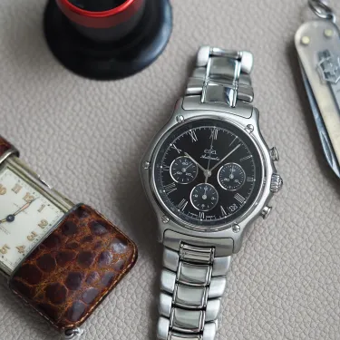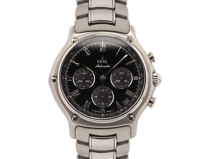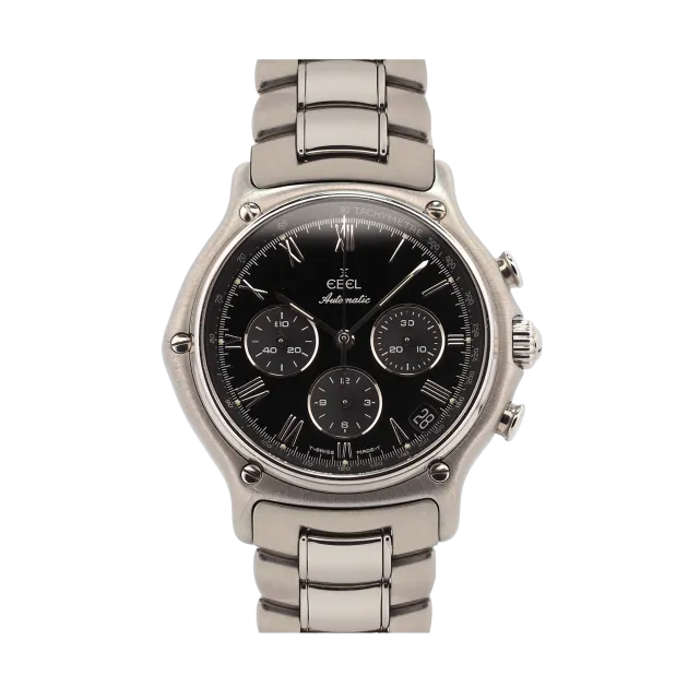 Here is a stunning Ebel 1911, an automatic chronograph dating from 1996.