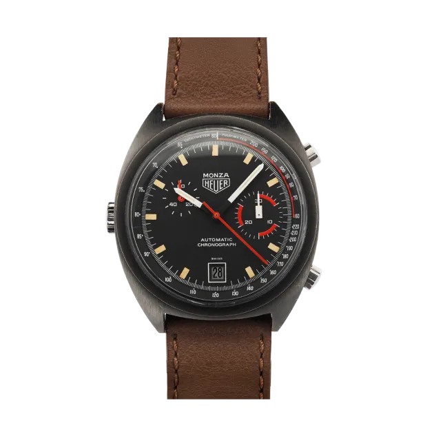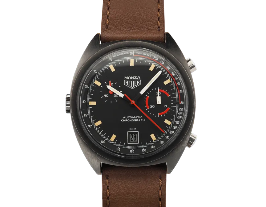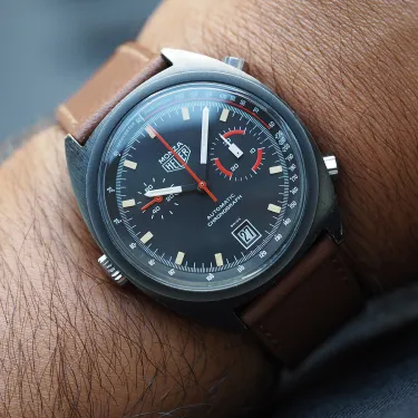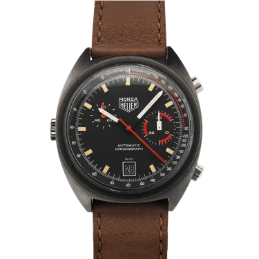 Here is an automatic Heuer Monza chronograph, reference 150.501, dating from the mid-1970s.