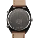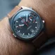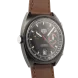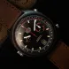 Its 39 mm stainless steel case with black PVD coating houses a matte black dial with two sub-dials: small seconds and a 30-minute chronograph counter. Red accents highlight the central chronograph hand, the outline of the 30-minute counter, and the small seconds hand, adding contrast and character to the piece. A date window is placed at six o’clock.