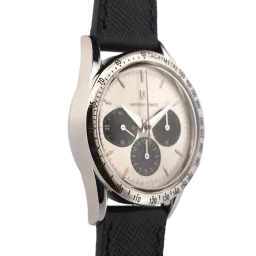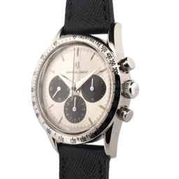 Its 37 mm stainless steel case houses a black dial perfectly balanced by three sub-dials characteristic of the Compax line, offering excellent legibility and timeless style. This version comes Full Set, with its original box and papers, as well as two interchangeable bezels: a perfectly fitted steel bezel, and a black bezel showing a noticeable blemish yet retaining all its vintage charm.