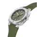 White markers, Applied silver color indexes filled with white luminous treatment, Date window at 6 o’clock, Hand-polished silver color hour and minute hands filled with white luminous treatment, Polished silver color second hand with red triangle, Khaki rubber strap, Folding buckle with push button.