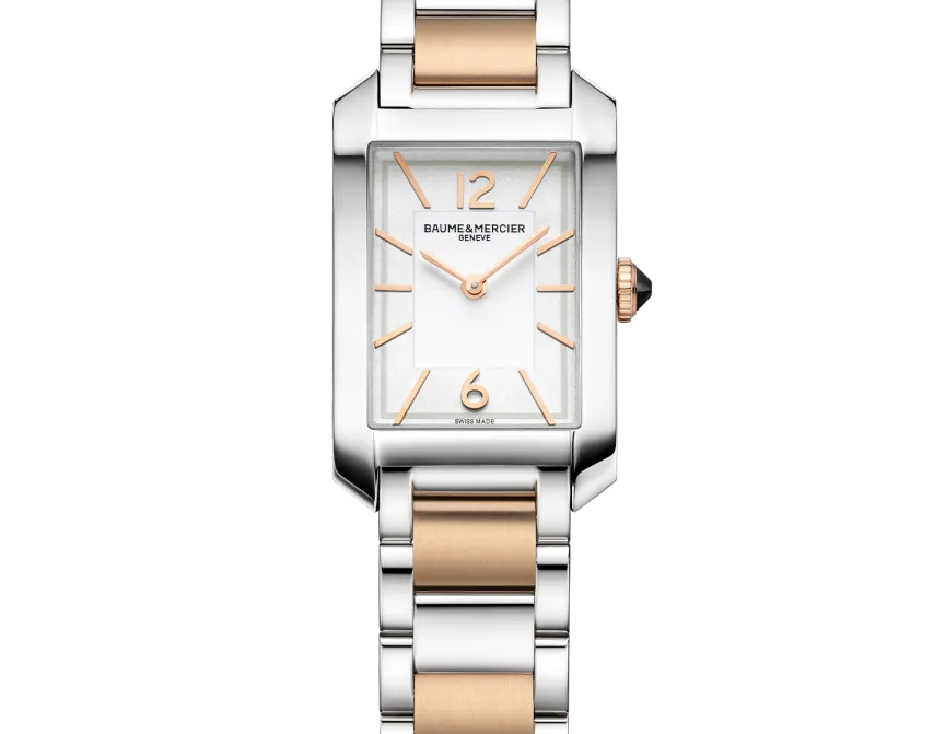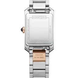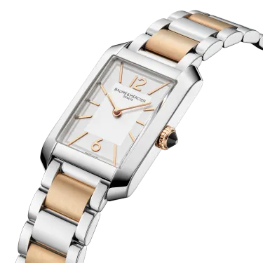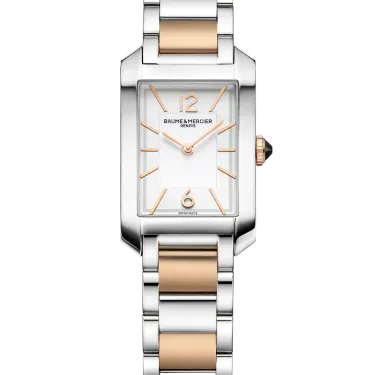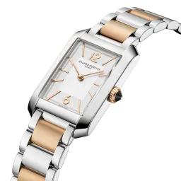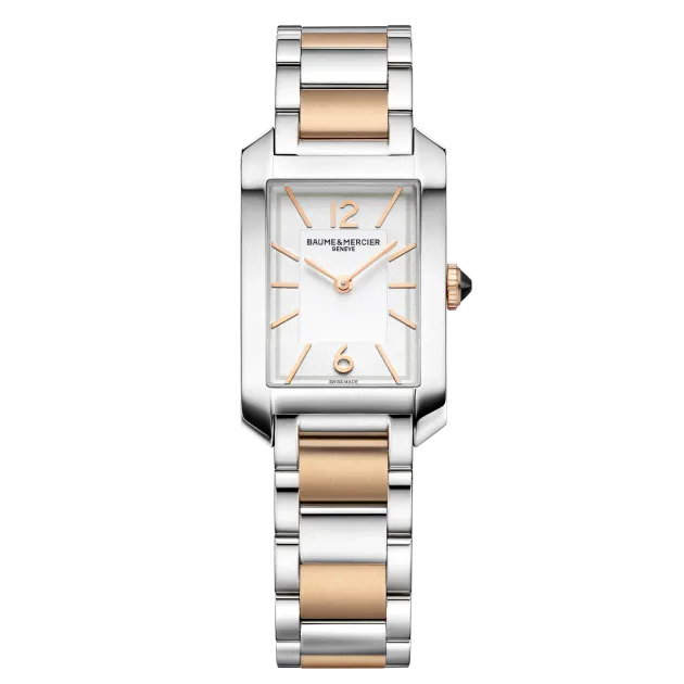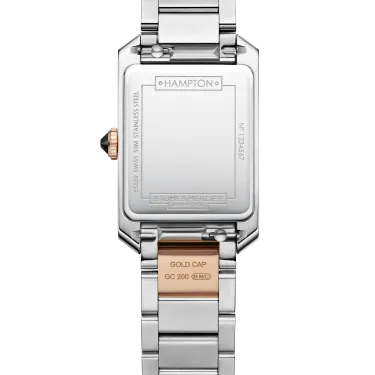 Opt for timeless elegance with this Hampton timepiece featuring a quartz movement for precision. Housed in a polished steel case, its opaline dial is adorned with golden Arabic numerals and sword-shaped hands, while its interchangeable steel and rose gold-plated steel bracelet allows you to vary your style with elegance. For formal evenings or weekend getaways, this watch will accompany you on all your travels with grace and sophistication.