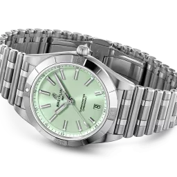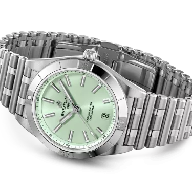 Stylish yet elegant, the modern-retro inspired Chronomat Automatic 36 is the versatile sporty and chic watch for any occasion. It is available in an array of metal cases, from cool stainless steel, to goes-with-everything bicolor, or even luxurious 18k red gold. Women craving extra sparkle will also be able to opt for diamond-set bezels, indices, and colorful dials. Featuring Breitling’s iconic and comfortable “Rouleaux” bracelet with a butterfly clasp, the Chronomat Automatic 36 is powered by the Breitling Caliber 10, a COSC-certified chronometer.