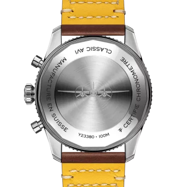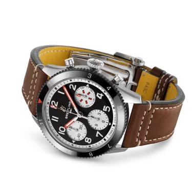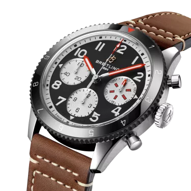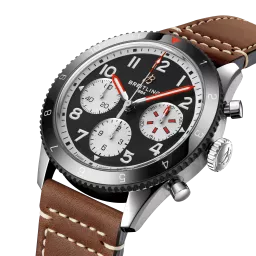 From brave first takeoffs to the birth of commercial air travel, Breitling’s history is inseparable from that of flight. In the 1930s, Breitling’s Huit Aviation department made its name inventing precision cockpit clocks. Two decades later, it introduced yet another novel flight instrument, this time in wearable form: the Ref. 765 AVI. That pioneering pilot’s watch provided the technical backdrop for today’s Classic AVI, a collection inspired by the rugged spirit of famed early aircraft. The Classic AVI Mosquito honors one of those legends. In an era when aluminum and steel shortages were common, the engineers behind the de Havilland Mosquito made use of a still plentiful material: wood. The “Wooden Wonder” caused shockwaves when it outperformed its metal contemporaries to become one of the fastest planes built between 1940 and 1950. Its superior maneuverability allowed it to multitask in roles as far ranging as light bomber, night-fighter, transport and photographic reconnaissance aircraft. As a true pilot’s watch designed to withstand the rigors of a vintage cockpit, the Classic AVI Mosquito features large, highly legible Arabic numerals on the dial and bezel. The knurled bezel on the 42mm case provides optimal grip, even in a pilot’s gloved hands. Top-stitched calfskin straps give a nod to the seams found on classic flight gear, while the stainless-steel bracelet provides an elegant alternative. Pilots and other travelers will appreciate its legibility, wearability, and understated style. The engine of the Classic AVI is the COSC-certified Breitling Caliber 23 movement, which provides approximately 48-hours of power reserve.