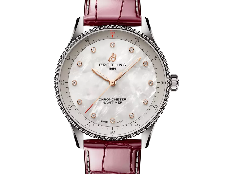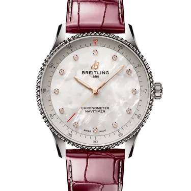 Breitling’s icon—for the journey. The Navitimer is one of the most recognizable watches ever made. It’s on collectors’ lists of the greatest watches of all time. What began in 1952 as a tool for pilots has gone on to mean something profound to every single person who has had this timepiece along on their personal journey. Our icon now comes in 36 and 32 mm sizes for women and men who love the look and feel of a smaller diameter watch. While the 36-mm Navitimer features the beaded bezel and iconic circular slide rule that gives the Navitimer its unmistakable appearance, the dazzling 32 mm variation forgoes the slide rule in favor of a simplified dial design suited to its slim diameter. But these showstoppers have so much more to offer than just their trim new sizes. Pops of pastel, mother of pearl, and traceable precious materials combine with subtle refinements to give the timepieces a jewelry-like appeal—adding a versatile elegance to the legendary navigational watch that’s ready for wherever the journey takes you.