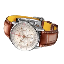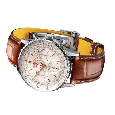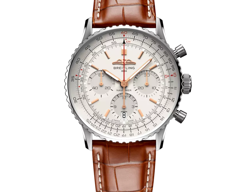 Breitling’s iconic pilot’s chronograph – for the journey. In 1952, Willy Breitling developed a wrist-worn chronograph with a circular slide rule that would allow pilots to perform all necessary flight calculations. Two years later, the Aircraft Owners and Pilots Association (AOPA) announced the design as its official timepiece. The “navigation timer” – or Navitimer – was born. The AOPA was (and remains) the largest pilots’ club in the world, counting nearly every US aviator among its ranks. As the defacto pilot’s watch throughout the glory days of civil aviation, the Navitimer was worn by airline captains and aircraft enthusiasts. It even made its way into space on the wrist of astronaut Scott Carpenter in 1962. And it wasn’t only pilots drawn to the watch’s irrepressible aesthetic. Celebrities of the day such as Miles Davis and Serge Gainsbourg were devotees, proving that the Navitimer had style as well as function. There have been many iterations of Breitling’s icon since its debut 70 years ago, but this new Navitimer captures its most classic features, while enhancing them with modern refinements. A flattened slide rule and a domed crystal create the illusion of a sleeker profile. Alternating polished and brushed metal elements give a lustrous, yet understated finish. Most notably, new colors in shades of blue, green and copper, define the updated dial options. And if there is one update sure to spark nostalgia, it’s the return of the AOPA wings to their original position at 12 o’clock. For 70 years, Breitling’s original pilot’s watch has been beloved by aviators and tastemakers in equal measure. Worn by astronauts in space and the biggest stars on earth, it is Breitling’s most iconic timepiece and one of the most recognizable watches of all time.