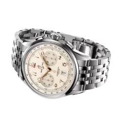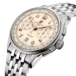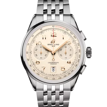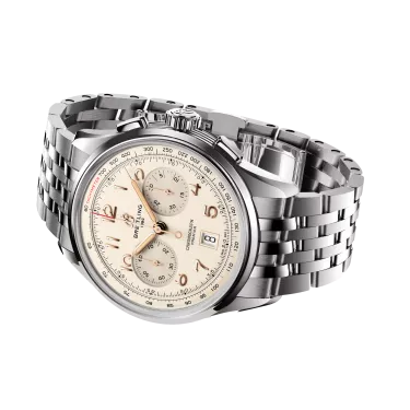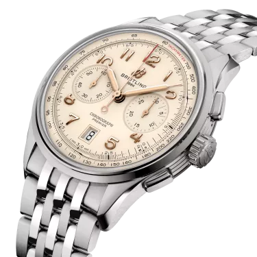 In the early 1940s, Willy Breitling was already dreaming of a time after the war, when utility would give way to unbridled optimism. He began designing a chronograph that would be functional but also undeniably elegant and infinitely wearable—in his words, “the unmistakable stamp of impeccable taste.” He called this new line the Premier. To create its modern Premier, Breitling preserved distinctive vintage-Premier details, including the smooth fixed bezel, twin-register dial, streamlined rectangular pushers and applied Arabic numerals. The Premier B01 Chronograph 42 is available in an array of dial colors and case materials. It comes on a choice of classic alligator leather strap or sleek 7-row metal bracelet. Today’s Premier also lives up to Willy Breitling’s uncompromising technical standards with its exceptional self-winding movement—the COSC-certified Breitling Manufacture Caliber 01—designed for maximum precision, reliability and functionality.
