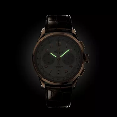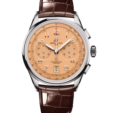 In the early 1940s, Willy Breitling was already dreaming of a time after the war, when utility would give way to unbridled optimism. He began designing a chronograph that would be functional but also undeniably elegant and infinitely wearable—in his words, “the unmistakable stamp of impeccable taste.” He called this new line the Premier. To create its modern Premier, Breitling preserved distinctive vintage-Premier details, including the smooth fixed bezel, twin-register dial, streamlined rectangular pushers and applied Arabic numerals. The Premier B01 Chronograph 42 is available in an array of dial colors and case materials. It comes on a choice of classic alligator leather strap or sleek 7-row metal bracelet. Today’s Premier also lives up to Willy Breitling’s uncompromising technical standards with its exceptional self-winding movement—the COSC-certified Breitling Manufacture Caliber 01—designed for maximum precision, reliability and functionality.