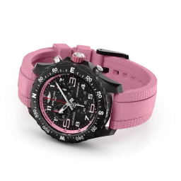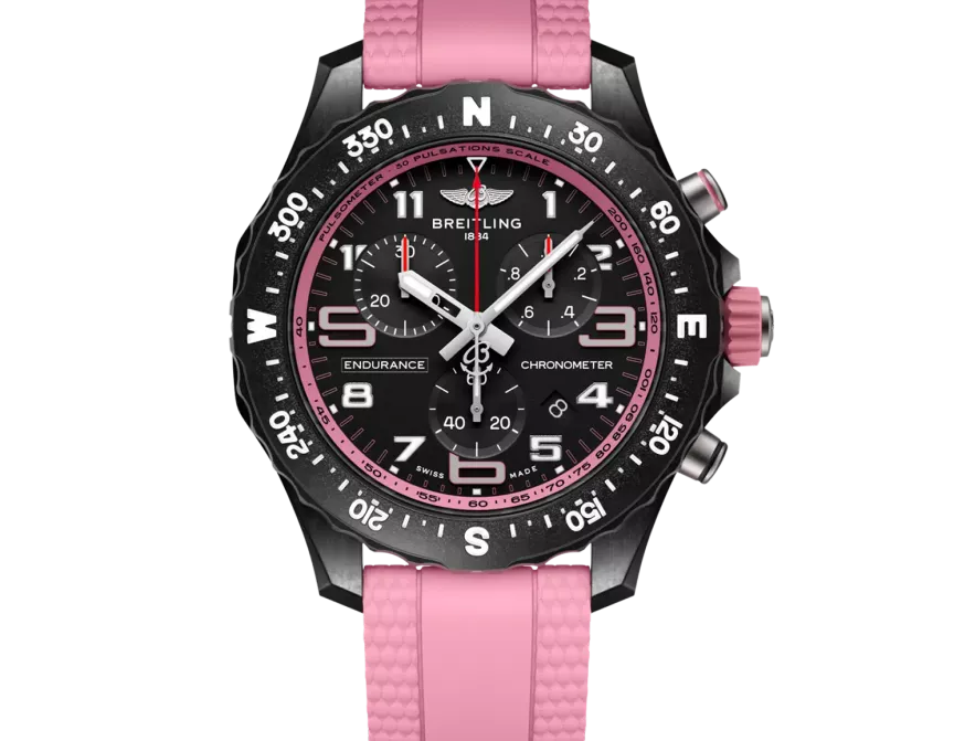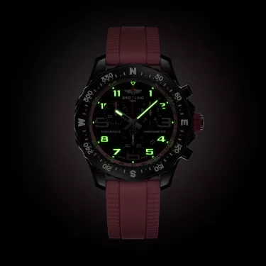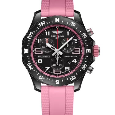 Designed to be both a lightweight timepiece for athletes and a casual, everyday sports chronograph, the Endurance Pro perfectly blends innovative technology with a vibrant design to produce the ultimate athleisure watch. Designed for men and women whose active lives combine a professional mindset with a sporty lifestyle, the Endurance Pro is up to the challenges of a rigorous workout, but fashionable enough for everyday wear. The Endurance Pro features an ultra-light Breitlight® case, a robust material 3.3 times lighter than titanium and 5.8 times lighter than stainless steel. Non-magnetic, thermally stable and hypoallergenic, Breitlight® is highly resistant to scratches, traction and corrosion. It also has a feel that is warmer than metal and a slightly textured effect, accentuating the originality of the design. Exclusive to Breitling, the material is 100-percent Swiss-made. In 44 mm or 38 mm, the Endurance Pro is available to athletes with a multitude of colorful dials and rubber straps all fitting a Breitlight® tang-type buckle. The two sizes are respectively powered by Breitling’s Caliber 82 and 83, both COSC-certified SuperQuartz™ chronographs delivering exceptional precision.