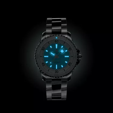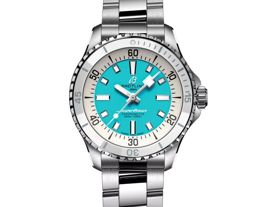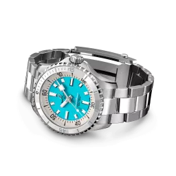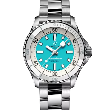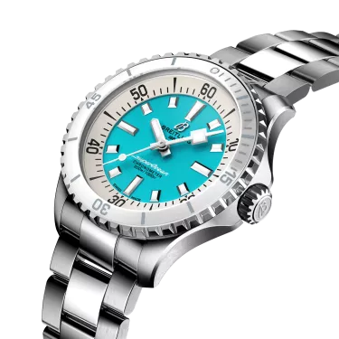 Performance and style for all your water-based pursuits. In the 1960s, the new sport of scuba diving was all the rage. For divers, timing was everything, and Breitling set out to give them the most clear-cut dive watch possible by eliminating any feature that didn’t support their lifesaving needs underwater. This pared-down watch was named the Slow Motion. What remained were clean lines, chunky luminescent indexes, squared-off hands and a high-contrast dial ring, all aimed at maximum legibility. Practical, yes. But what people really fell in love with was the look. The new Superocean retraces the Slow Motion's celebrated design codes, while adding modern features, like a ceramic-inlayed bezel and brightly colored dials. Broad hands and indexes in luminescent Super-LumiNova® allow for easy readability underwater. The watch is water resistant to 300 m (1000 ft), as well as being shock-, sand- and saltwater-resistant. The bronze version uses a special alloy that has excellent resistance to corrosion, yet will still develop a subtle patina over time that makes the watch even more unique. The two strap options (rubber and metal bracelet) have a folding clasp that allows for micro-adjustments of up to 15 mm for easy wear over rashies and wetsuits. Its scratch-proof ceramic inlayed bezel will never wear or fade. For safety, the bezel is uni-directional on most sizes and bi-directional with a patented lock on the 46 mm. Best of all, this is no longer strictly a dive watch—surf with it, swim with it, hit the beach bar with it, then wear it out to dinner. The Superocean perfectly balances the nostalgia of its heritage with a fresh new look.
