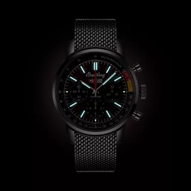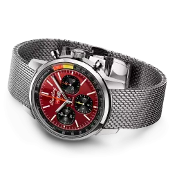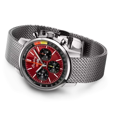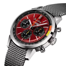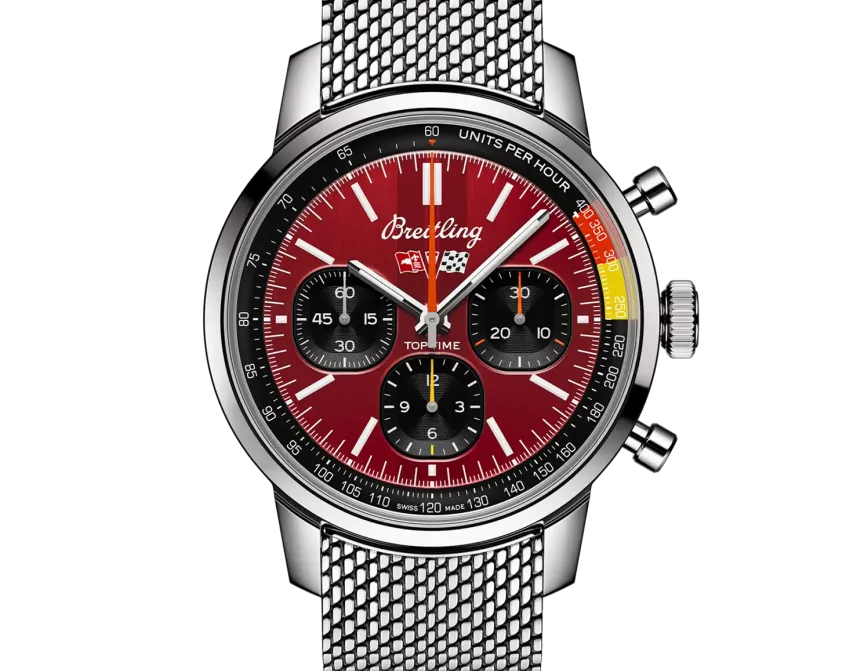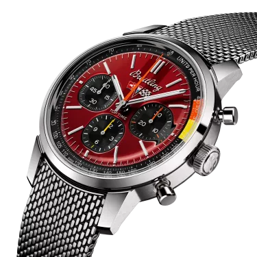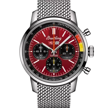 The 1960s was a decade of experimentation, fun, freedom and energy. Whether cruising on a motorcycle or revving up a sportscar, living life at full speed was the order of the day. Willy Breitling felt this change of pace and set out to design an unconventional chronograph that would capture the verve of era. He called it the Top Time. That spirited tradition continues today with Breitling partnering with some of the coolest names in wheels to create its Top Time designs. The second-generation Chevrolet Corvette, from the 1963 to 1967 model years, is the most sought-after version of the American legend. The “Sting Ray,” as it was known, took inspiration from a 1959 racing-model prototype. For 60 years, it has captured the imaginations of car lovers around the world with its perfect combination of a low-profile body and a powerful engine that delivers performance whether on the road or on the track. The Top Time B01 Chevrolet Corvette features the colors and emblem of its classic-car counterpart as well as a perforated leather racing strap, speed-measuring tachymeter scale and contrasting “squircle” (not quite square, not quite round) subdials that give the feel of vintage dashboard gauges. It also comes with a brag-worthy engine under the hood: the exceptional Breitling Manufacture Caliber 01.