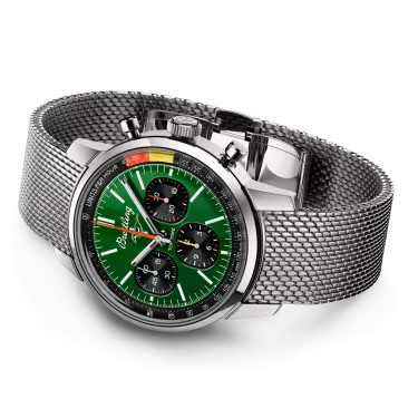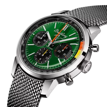 The 1960s was a decade of experimentation, fun, freedom and energy. Whether cruising on a motorcycle or revving up a sportscar, living life at full speed was the order of the day. Willy Breitling felt this change of pace and set out to design an unconventional chronograph that would capture the verve of era. He called it the Top Time. That spirited tradition continues today with Breitling partnering with some of the coolest names in wheels to create its Top Time designs. The first-generation Ford Mustang, produced from 1964 to 1974, became the car of choice for hitting the road in hip 1960s America. This living legend is still in production, but car buffs know that the coolest of all were those very first models that captured the freewheeling spirit of the sixties. The Top Time B01 Ford Mustang features the colors and emblem of its classic-car counterpart as well as a perforated leather racing strap, speed-measuring tachymeter scale and contrasting “squircle” (not quite square, not quite round) subdials that give the feel of vintage dashboard gauges. It also comes with a brag-worthy engine under the hood: the exceptional Breitling Manufacture Caliber 01.
