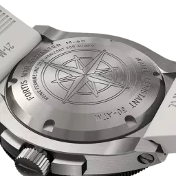 Inspired by nature, the new Marinemaster collection presents itself in a colourful, robust and sturdy design with a lot of love to detail and functionality. Whether while fi shing, windsurfi ng, hiking or camping – the new Marinemaster is the perfect companion for any outdoor adventure. Connecting to nature, life and the horizon. The new collection consists of two Models and fi ve colours inspired by nature: Marinemaster M-40 is available in Rockstone Gray, Woodpecker Green, Serenity Blue and Snow White while Marinemaster M-44 stuns in Amber Orange. The dials feature hand applied indices and logo saturated in Superluminova X1 and the pattern gently mirrors the Fortis “O”. As a first in the watch industry Fortis have introduced recycled steel to redefine their toolwatches. This mindset of sustainability continues with the new Marinemaster collection. The newly designed Horizon Strap comes in a sporty look and comfortably connects the wrist, the watch and the horizon. All models are also available with the stainless-steel Block Bracelet and the Slide Clasp. Made to inspire the wearer to shift down a few gears, the new Marinemaster features the Gear Bezel™ – the most gripping and functional tool watch bezel ever designed. The M-44 is equipped with a bidirectional Gear Bezel™ and features the Fortis Lock System® The new Marinemaster M-40 is powered by the chronometer-standard, automatic UW-30 Performance, while the Marinemaster M-44 has been equipped with WERK 11, the COSC certifi ed Kenissi manufacture calibre with a 70hr power reserve. Water resistance up to 300M.
