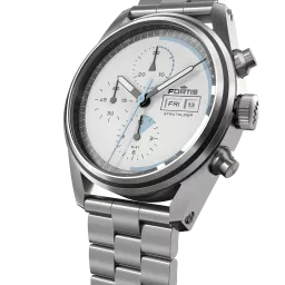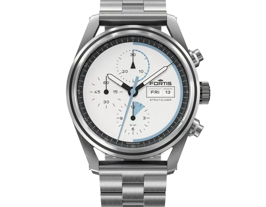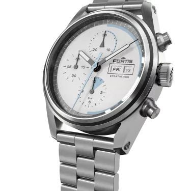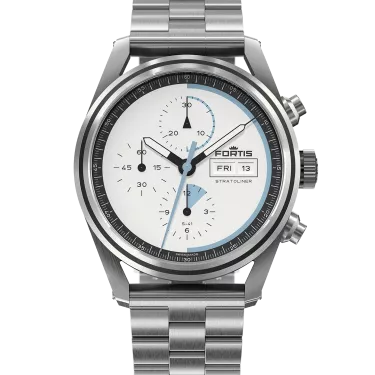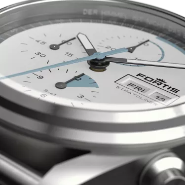 Adding to many firsts in the history of Fortis, the redefined Stratoliner Collection features the first manufacture calibre which was custom built for space and tested in the Stratosphere. Inspired by the persistence of great visionaries, the New Stratoliner is both tribute and motivation – it is the tool for those inventing tomorrow. It is the tool to go beyond the impossible. Tested and proven in the Stratosphere As a direct result of the rich history and the enthusiasm for all things space related, Fortis have founded a new partnership with the Swedish Space Corporation. In a thoroughly researched and meticulously planned testing phase, the new manufacture calibre WERK 17 was tested and approved under the harsh conditions of the stratosphere. A robust and reliable column wheel chronograph The new Fortis manufacture calibre, the WERK 17, is a self-winding chronograph calibre which features a column wheel for enhanced reliability. The custom designed traversing bridge offers ultimate, space-proof robustness. It has been regulated to the Fortis performance requirements resulting in the highest accuracy for every environment. Furthermore, the new Stratoliner boasts a power reserve of 60hrs. The Stratoliner Collection consists of three stainless steel versions with a 41mm case diameter: White Dust, Cool Gray and Cosmic Gray. Inspired by the depth and vastness of space, the Dust DialTM of the new Stratoliner combines functionality with design. Details in Superluminova® X1 and the double sided SpaceAR Coating on the sapphire ensure highest readability even in the harsh conditions of the Stratosphere and the outer space. The Stratoliner collection is available on Block Bracelet with Slide Clasp or on Aviator Strap. The caseback impresses with smoked sapphire featuring the Fortis spaceship window, granting a glimpse to the column wheel. The engraved quote “Der Himmel ist nicht das Ende der Welt“ is a gentle reminder: Sky is no limit.