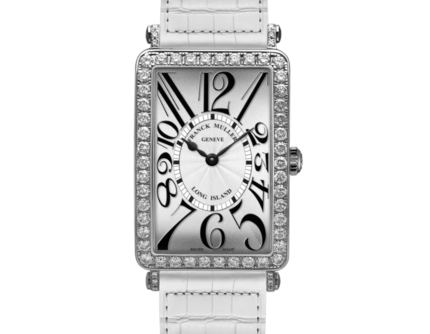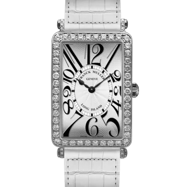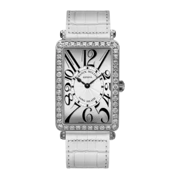 The architecture of the Long Island™ pays tribute to the Art Deco movement in a new vision of the Novecento style. The Long Island, driven by its rectangular shape and numbers has become a leading collection of Franck Muller. Available in various sizes and complications, the Long Island is designed to perfectly fit the wrist of its owner. Long Island Stainless Steel & Hand polished case, Hand set with 64 brilliant-cut diamonds (1.02 carats), Rhodium plating, Width: 22.9 mm x Length: 40.15 mm x Thickness: 7.15 mm, Sapphire crystal, Water resistant up to 30 meters, Stamped guilloché with sun pattern dial, 20 layers of translucent lacquer, MVT FM 1321-QZ movement, Quartz movement, Battery life of about 4 years, 27 components, 7 jewels, Width: 9.00 mm. Length: 13.20 mm. Thickness: 2.10 mm, Quartz frequency set at 32,768 alternations per hour, Côtes de Genève on the center of the casing ring, Circular graining, 24k gold finish on the written engravings and rhodium plating, Hand sewn alligator strap with Stainless steel, Rhodium plating, Hand set with 8 brilliant-cut diamonds (0.09 carats) & Hand polished buckle and with functions hours, minutes.