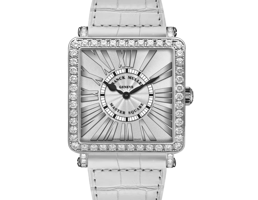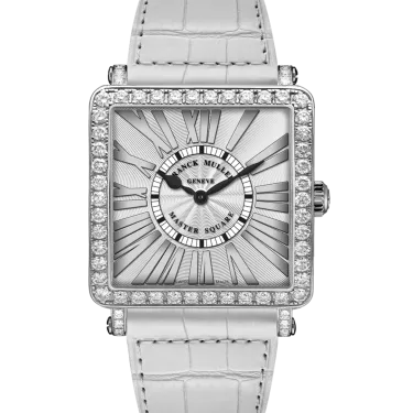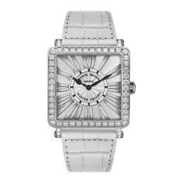 The Master Square™ is inspired by Franck Muller’s taste for the Art Deco movement. The geometrical purity and symmetry of the lines give this collection a perfectly balanced design. Harmony and balance are the watchwords when it comes to describing the design of the Master Square. With its strong character and various sizes, the Master Square is a must have that will perfectly fit to the wrist of its owner. Master Square Stainless Steel & Hand polished case, Rhodium plating, Width: 32.7 mm x Length: 40.7 mm x Thickness: 8.5 mm, Sapphire crystal, Water resistant up to 30 meters, Stamped guilloché with sun pattern dial, Roman numerals, Raised numbers with a mirror polish, MVT FM 1526-QZ movement, Quartz movement, Battery life of about 7 years, 29 components, 4 jewels, Width: 13.00 mm. Length: 15.55 mm. Thickness:2.65mm, Quartz frequency set at 32,768 alternations per hour, Côtes de Genève on the center of the casing ring, Circular graining, 24k gold finish on the written engravings and rhodium plating, Hand sewn alligator strap with Stainless steel, Hand set with 10 brilliant-cut diamonds (0.17 carats), Rhodium plating & Hand polished buckle and with functions hours, minutes.