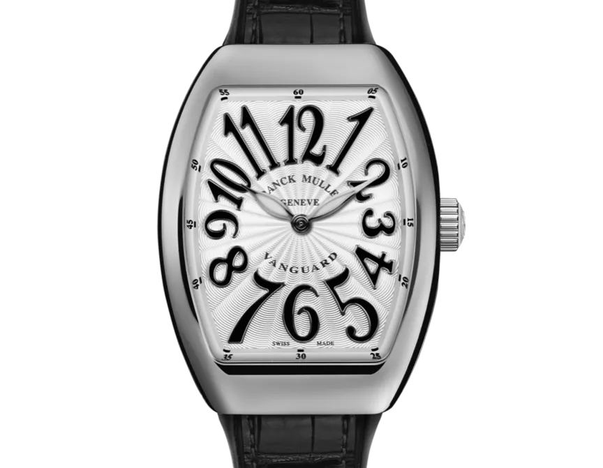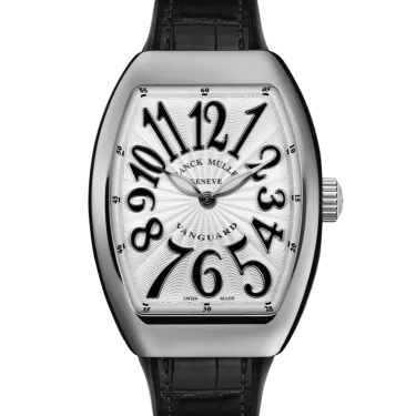 Distinguished by a sporty tonneau shape, the Vanguard™ calls in for clean and futuristic aesthetics with a one-of-a kind design. With refined taste, inserts on both sides of the case tastefully match the color on the numerals and strap for utmost elegance and style. The strap is cleverly integrated inside the case in order to maintain and extend the curved aspect of the timepiece, the result being a stunning timepiece with a unique design. Vanguard stainless steel & Hand polished case, Black inserts on both sides of the case, Width: 32 mm x Length: 42.3 mm x Thickness: 9.9 mm, Sapphire crystal, Water resistant up to 30 meters, Stamped guilloché with sun pattern dial, 20 layers of translucent lacquer, Applique numerals meticulously painted and applied by hand, MVT FM 1518-QZ movement, Quartz movement, Battery life of about 5 years, 40 components, 5 jewels, Width: 9.00 mm. Length: 15.55 mm. Thickness: 1.80 mm, Quartz frequency set at 32,768 alternations per hour, Côtes de Genève on the center of the casing ring, Circular graining, 24k gold finish on the written engravings and rhodium plating, Hand sewn alligator strap with 18k white gold & Hand polished buckle and with functions hours, minutes.