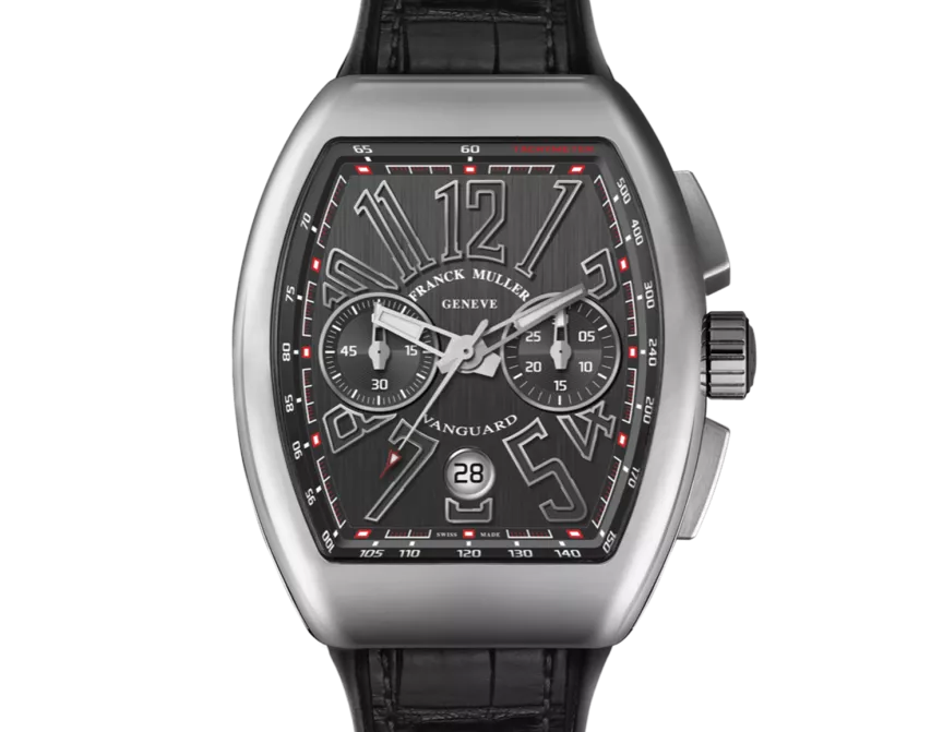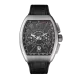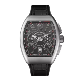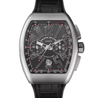 Distinguished by a sporty tonneau shape, the Vanguard™ calls in for clean and futuristic aesthetics with a one-of-a kind design. With refined taste, inserts on both sides of the case tastefully match the color on the numerals and strap for utmost elegance and style. The strap is cleverly integrated inside the case in order to maintain and extend the curved aspect of the timepiece, the result being a stunning timepiece with a unique design. Vanguard Stainless Steel & Hand polished case, Black inserts on both sides of the case, Width: 44 mm x Length: 53.7 mm x Thickness: 15.1 mm, Sapphire crystal, Water resistant up to 30 meters, Brushed finish dial, Applique numerals meticulously painted and applied by hand, Crown with 2 positions at 3 o'clock : 1. Winding. 2. Setting time, Pusher at 2 o'clock : Start / Stop of the Chronograph, Pusher at 4 o'clock : Reset at zero of the Chronograph, Corrector at 10 o'clock : Date correction, MVT FM 7000-C2-DT movement, Automatic movement, Power reserve of 46 hours, 283 components, 25 rubies, Diameter: Ø 30.40 mm. Thickness: 7.90 mm, Balance wheel fréquency set at 28'800 alternations per hour, Côtes de Genève on the bridges and the rotor, Polishing on the recesses, Chamfering of the bridges and pivots, Soleil finishing on the rotor segment, Satin finishing on the pivots, Perlage on the main plate and the barrel cover, Hand sewn alligator strap with Stainless steel & Hand polished folding buckle and with functions hours, minutes, seconds at 9 o'clock, Date at 6 o'clock, Chronograph (Seconds at centre, Minutes at 3 o'clock).