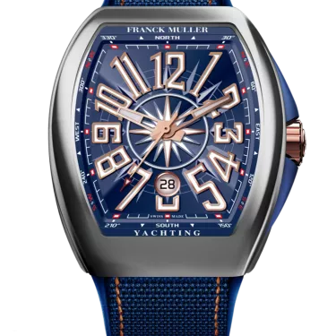 The Yachting collection stands out with its typically seafaring symbols such as the wind rose and compass which have been thoughtfully placed for dramatic effect on the Vanguard shaped dial. The spirit of this innovative collection is emphasized either by a sport nylon strap or by a hand sewn alligator strap for a more traditional look.