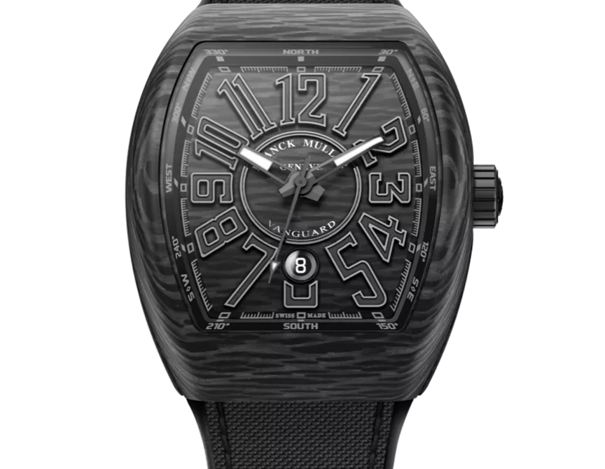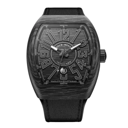 Distinguished by a sporty shape, the Carbon collection calls in for clean and futuristic aesthetics. Being one of the lightest materials used in Haute Horlogerie, the result is a stunning timepiece with a unique design. Vanguard Carbone & Hand brushed case, Black inserts on both sides of the case, Width: 44 mm x Length: 53.7 mm x Thickness: 12.7 mm, Sapphire crystal, Water resistant up to 30 meters, Brushed finish dial, Applique numerals meticulously painted and applied by hand, MVT FM 800-DT movement, Self-winding movement with bidirectional rotor system, Power reserve of 42 hours, 165 components, 21 jewels, Diameter: Ø 25.60 mm. Thickness: 3.75 mm, Balance wheel frequency set at 28,800 alternations per hour, Côtes de Genève and brushing soleil papier on the bridges and the rotor, Circular graining on the two sides of the main plate Chamfering of the bridges, 24k gold bath and rhodium plating of the components, 24k gold finish on the written engravings, Circular brushing of the rotor ball bearing, Brushing soleil papier on the barrel Polishing at 45° and brushing soleil of the ratchet, Polished and blued screws, Hand sewn canvas strap with Black PVD coating & Brushed folding buckle with functions hours, minutes, seconds, date at 6 o'clock.