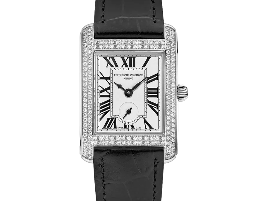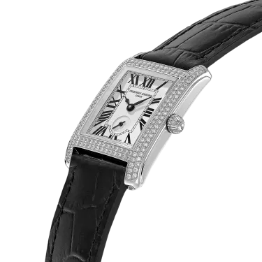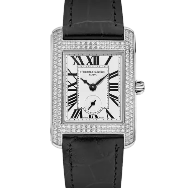 The Classics Carrée Small Seconds features a silvered dial with two central hands and an off-centred small seconds hand above a sector dial minute track, as well as large Roman numerals and a high-precision quartz movement. A chic, elegant timepiece that evokes the 1920s while offering a touch of modernity.